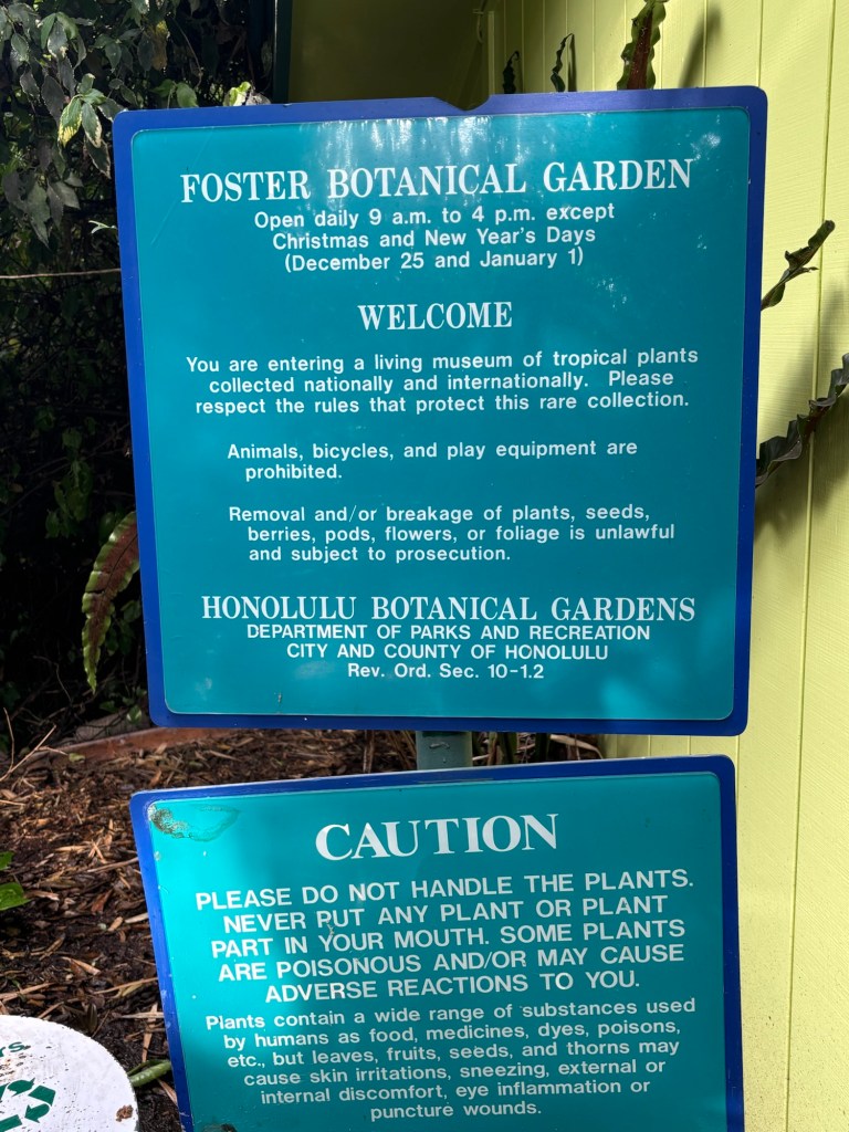 The first botanical garden we visited, Lili’uokalani, seemed more like a small city park with a stream and waterfall. That day there was a group of volunteers doing clean-up. There were a few flowering plants but nothing too exciting. The bigger disappointment was Foster Botanical Garden, not the garden itself but the discovery that we arrived past visiting hours. Makai contacted the tour operator. He informed the group that the entire tour would be refunded due to the screwup. Viking confirmed the refund later that evening.