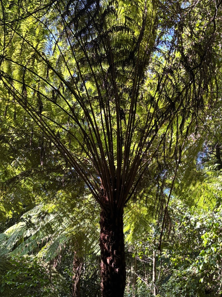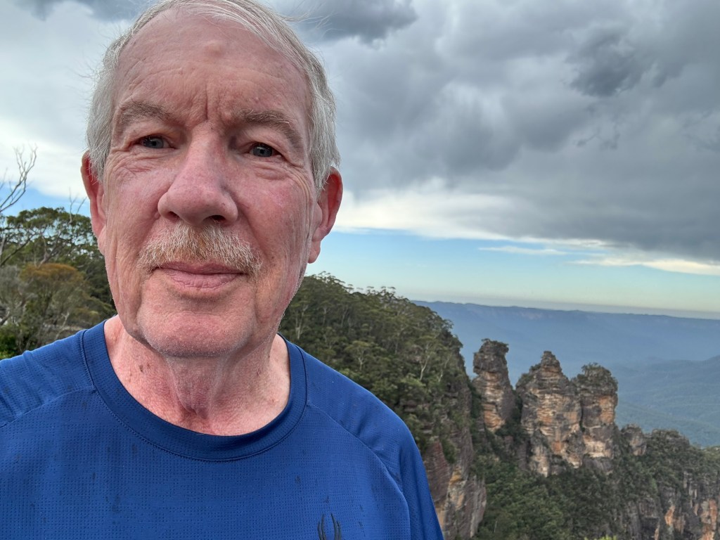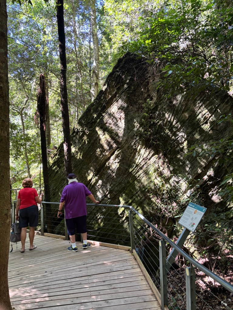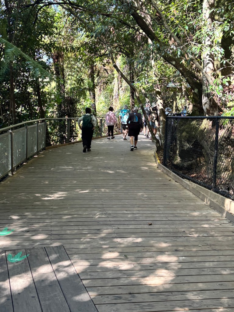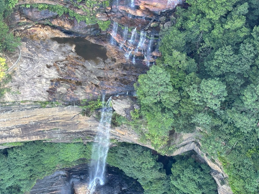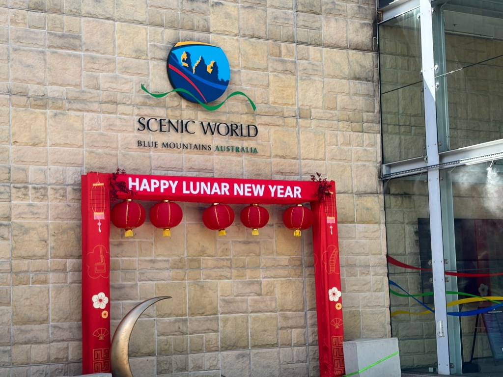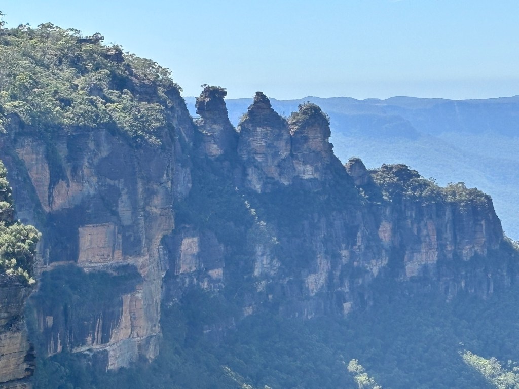 Today our tour group got an early start for the Blue Mountains, about two hours drive west of Sydney. Our destination was Scenic World in Katoomba. The venue was once a coal mine in the late 19th century. Today it is a modern attraction with multiple options for viewing the Blue Mountains and the Jamison Valley. We started with the Railway, a very steep set of 4 passenger compartments in which you could adjust the pitch of the car as you descended into the valley. At the bottom, there is an elevated walkway that runs between the base of the Railway and the base of the Cableway.