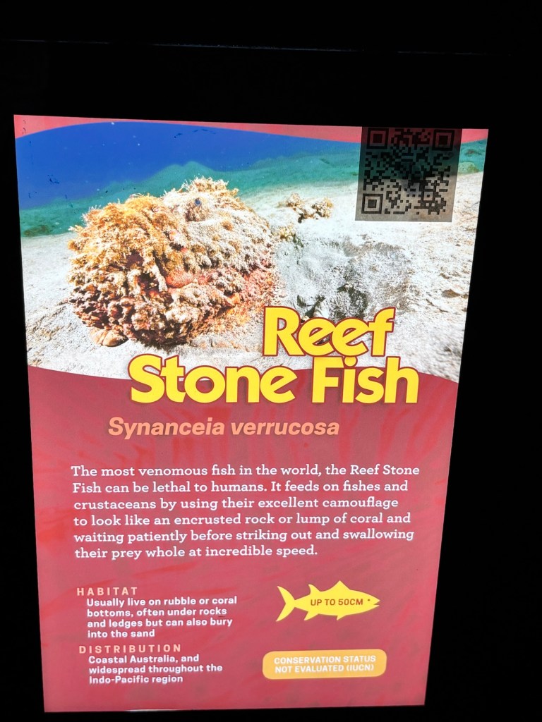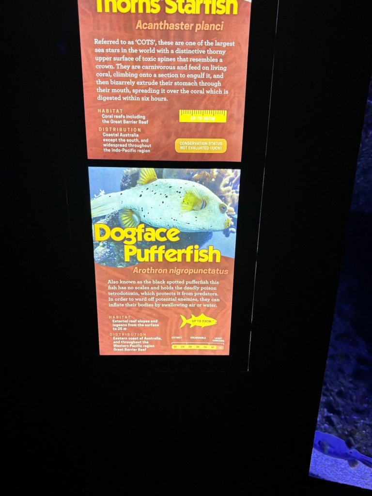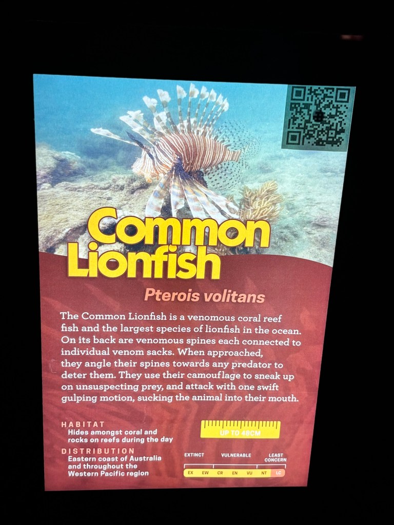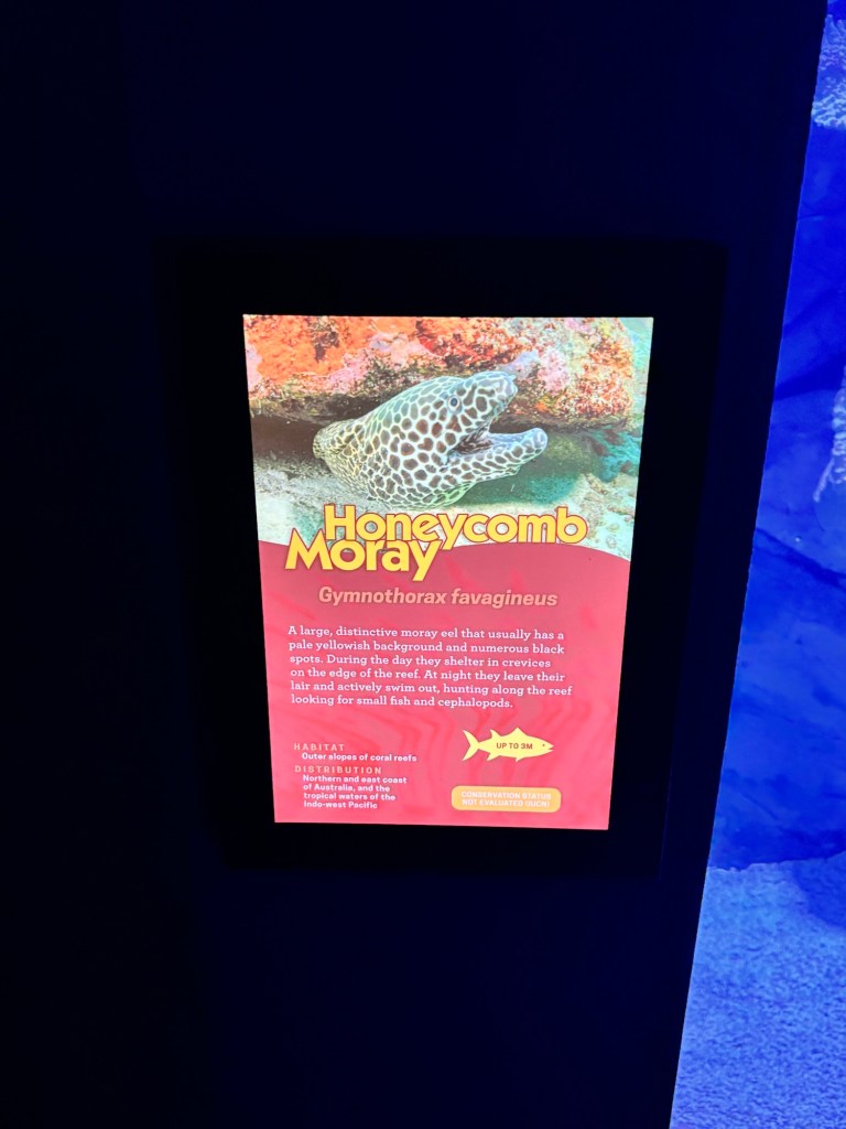 The included excursion today was a trip to the Cairns Aquarium. I know most everyone has been to an aquarium or two at one time or another, but this place is really well designed and all the exhibits are of fauna native to Queensland. Definitely worth a visit if you come here. There were too many to take notes on all, but maybe you zoology/marine biology majors can identify some of them.