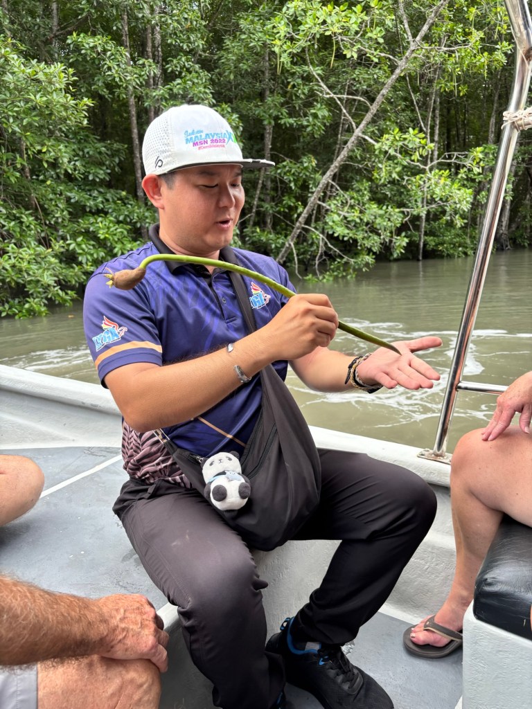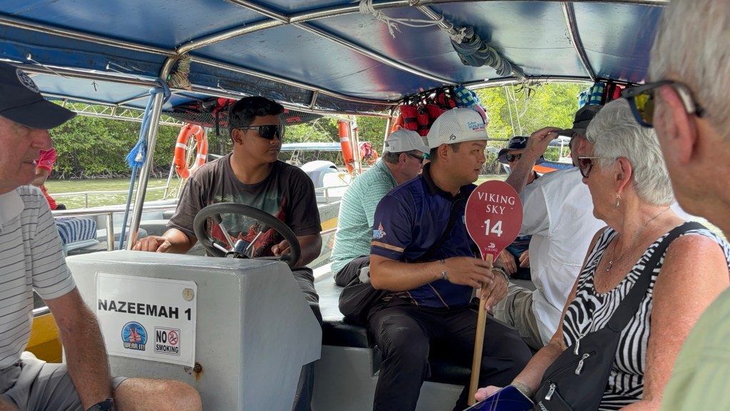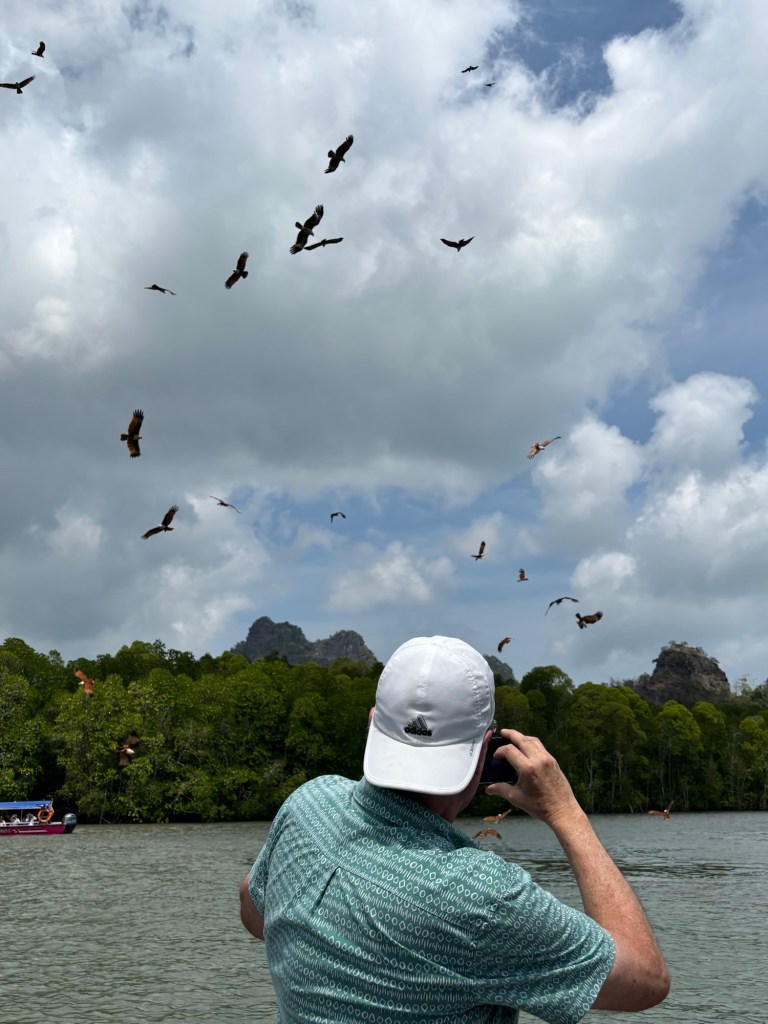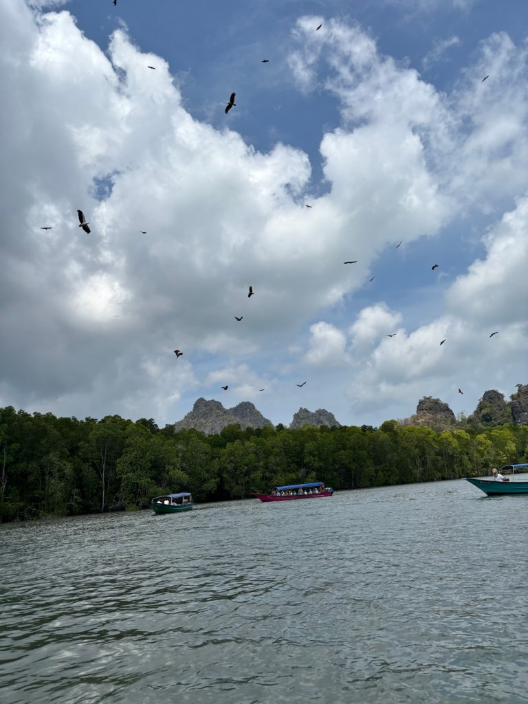Langkawi is much more laid back. Our guide, Joey, a former Ceylon Air flight attendant, retired here for that reason. Our driver must be a NASCAR fan given the white knuckle ride he gave us to the eco-park and back since we were running late. At the Geoforest Park we were treated to awesome scenery, an aerial display by endemic Brahminy kites (type of raptor) and a monkey-guarded bat cave. We also learned about the importance of mangrove forests and how they protect the area from cyclones and tsunamis.