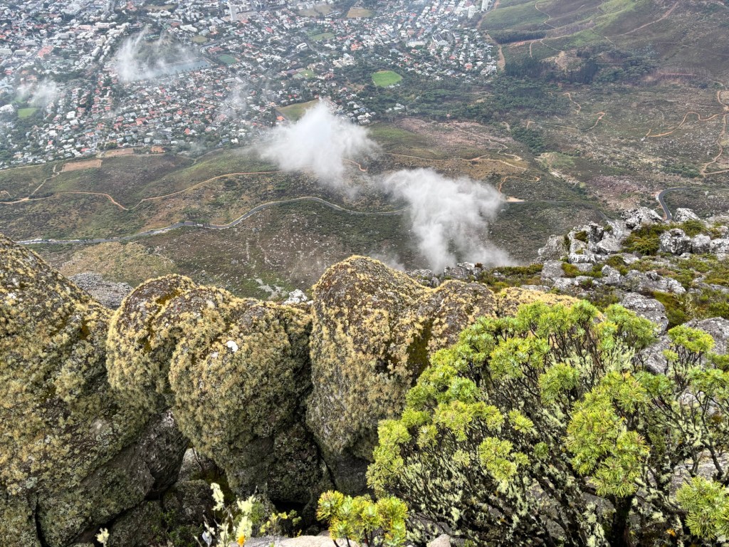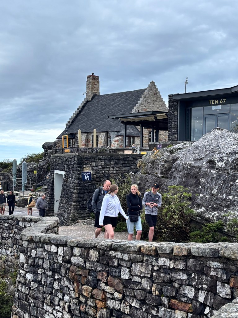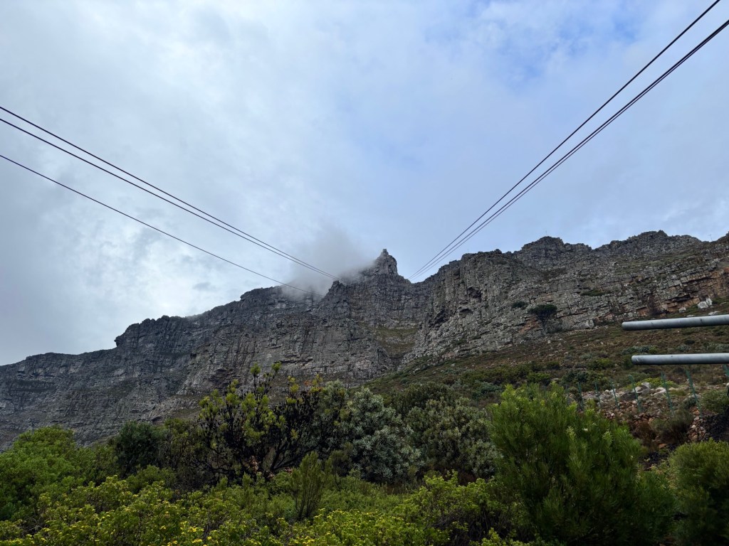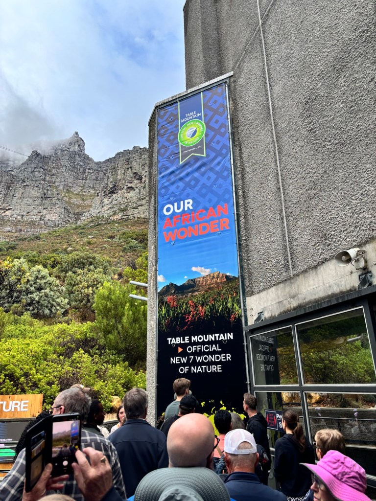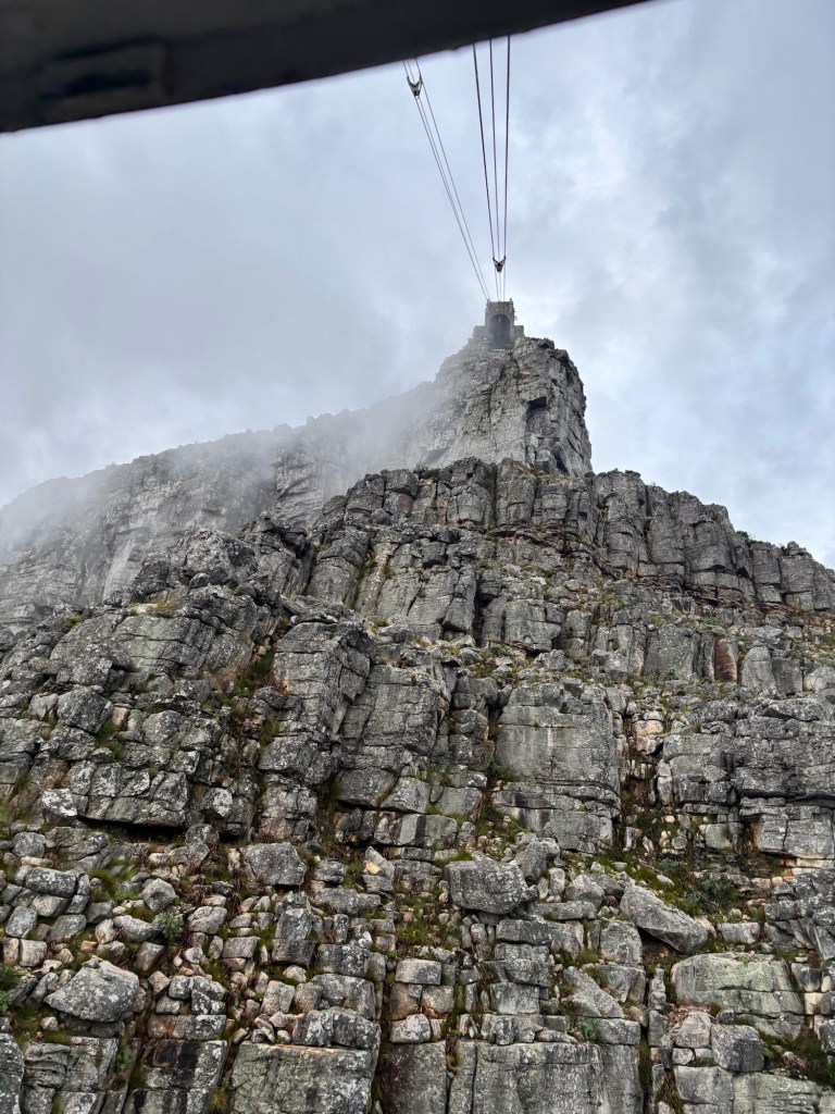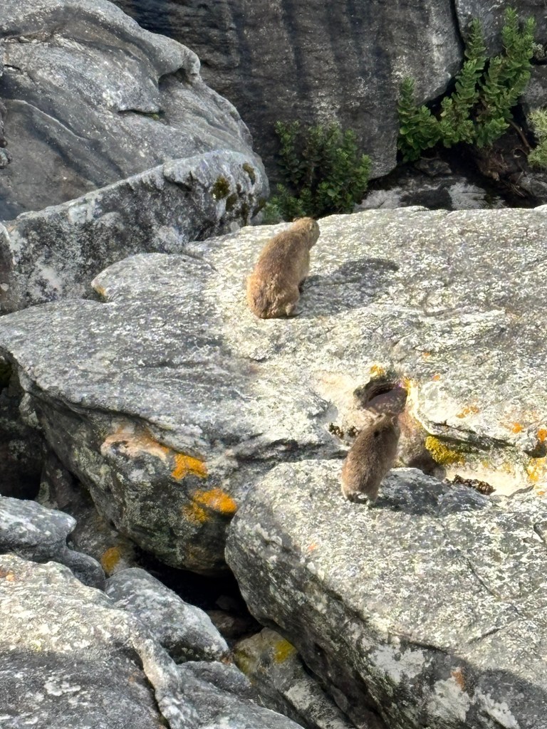 Table Mountain is the centerpiece to Cape Town’s iconic background. The mountain rises nearly 1100 meters and sections of it are over 550 million years old. Flanked on either side by Devil’s Peak and Lion’s Head, Table Mountain was wreathed in clouds on our cable car ride to the summit. The cable car holds around 65 and rotates 360 degrees on the ride up. At the top there is a cafeteria-style eatery and a gift shop. We had about two hours to explore the many trails and vantage points for picture-taking. You would think clouds wouldn’t be much of an issue below 1,000 meters, but they came and went constantly. We did see some permanent residents, the Rock Hyrox or more commonly known as “dassies “.