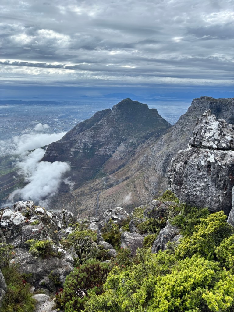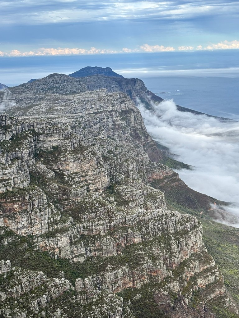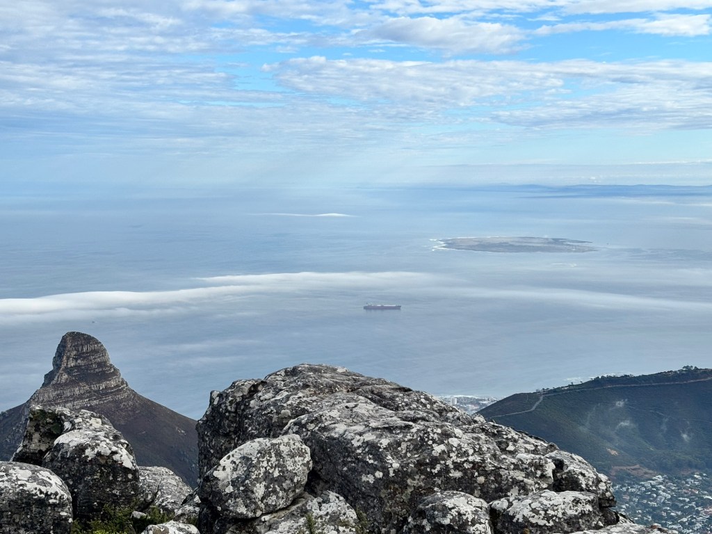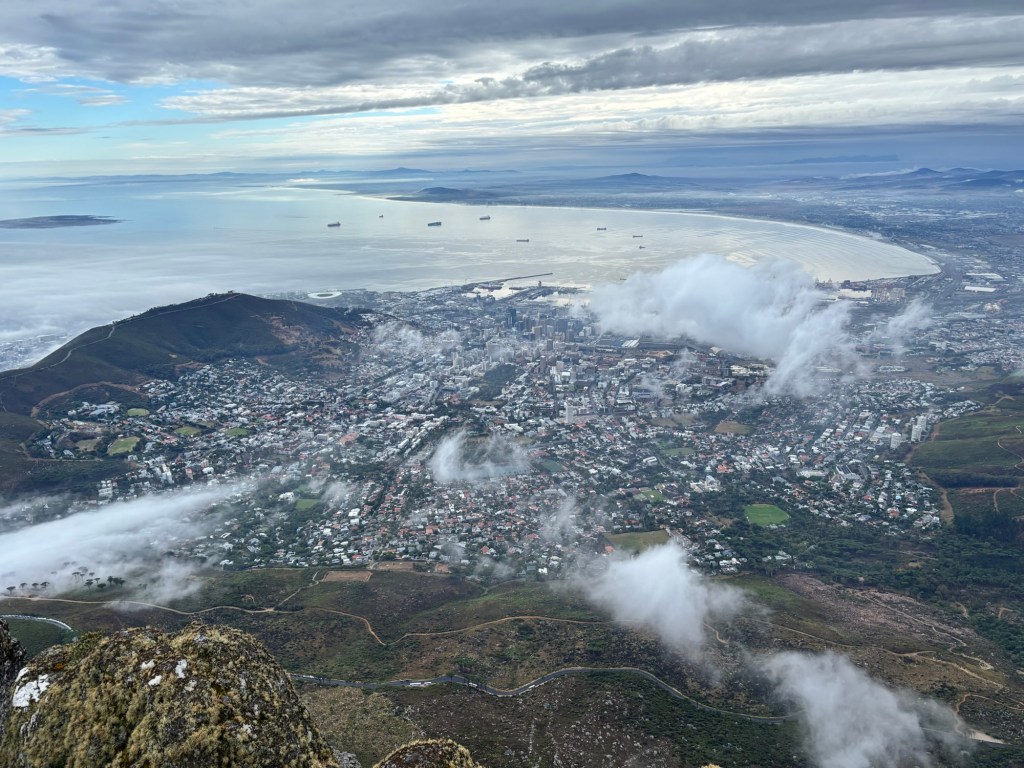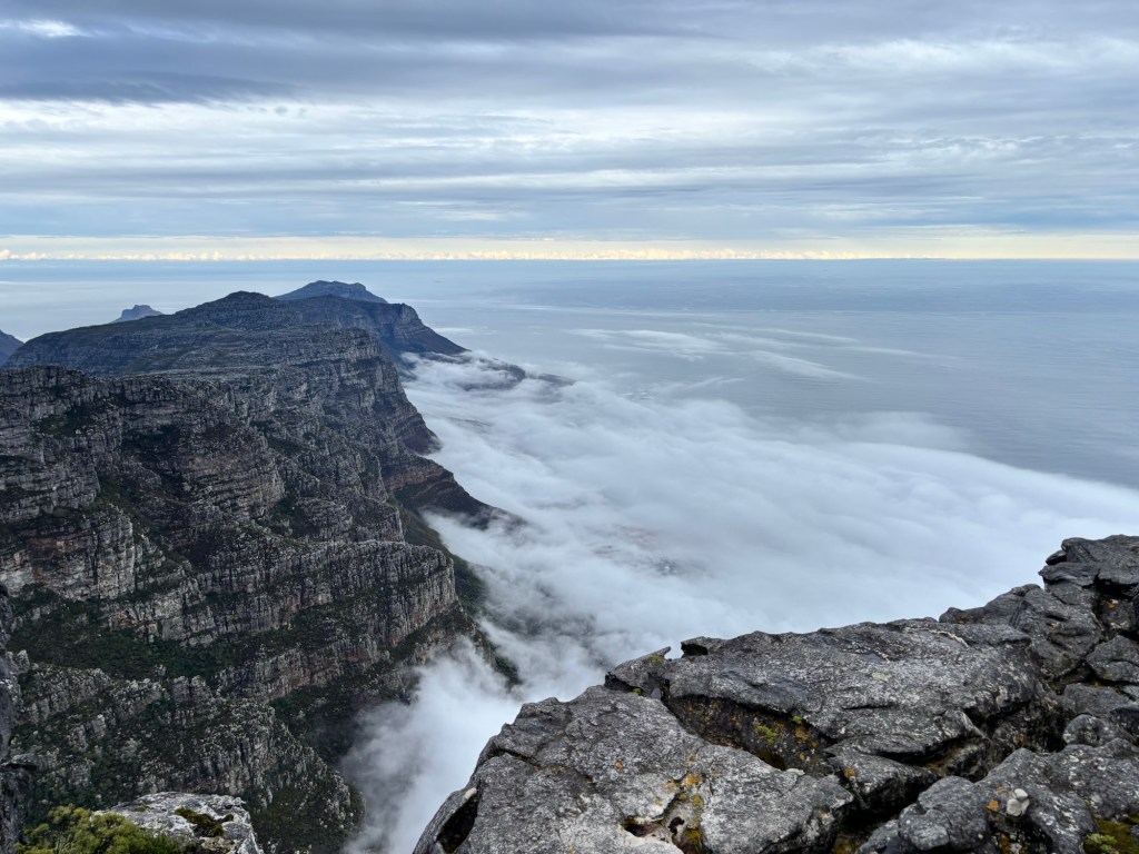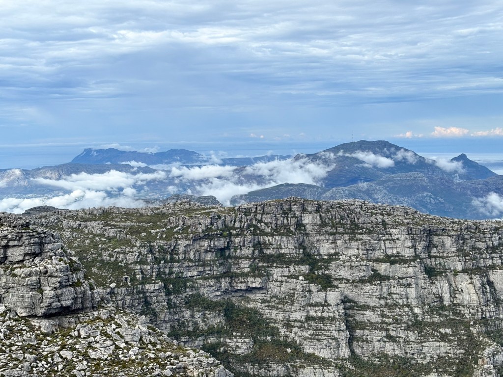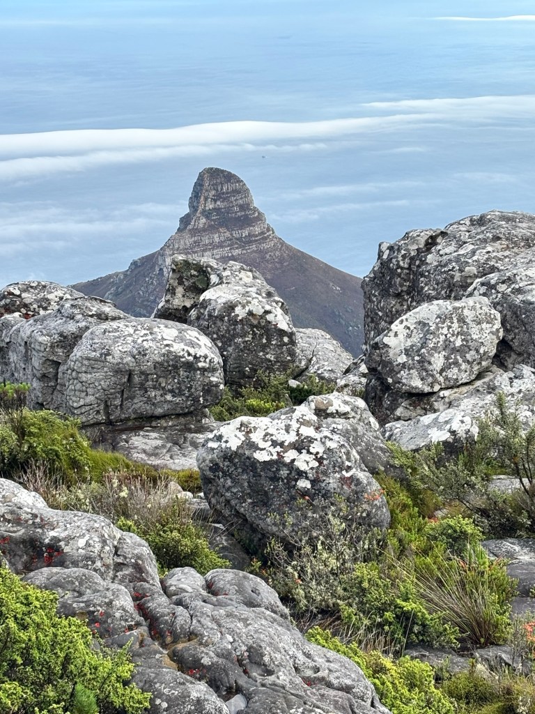 Table Mountain is the centerpiece to Cape Town’s iconic background. The mountain rises nearly 1100 meters and sections of it are over 550 million years old. Flanked on either side by Devil’s Peak and Lion’s Head, Table Mountain was wreathed in clouds on our cable car ride to the summit. The cable car holds around 65 and rotates 360 degrees on the ride up. At the top there is a cafeteria-style eatery and a gift shop. We had about two hours to explore the many trails and vantage points for picture-taking. You would think clouds wouldn’t be much of an issue below 1,000 meters, but they came and went constantly. We did see some permanent residents, the Rock Hyrox or more commonly known as “dassies “.