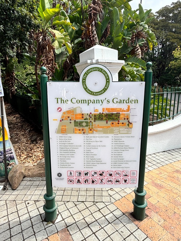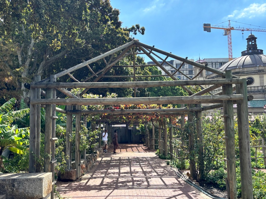 Later that day we visited The Company’s Garden. It is in a park-like setting that the Dutch had originally established as a source of provisions for Dutch East India ships on their way to India and the Spice Islands. We saw some magnificent trees, flowering plants and a working vegetable garden. There was also a singing group performing.