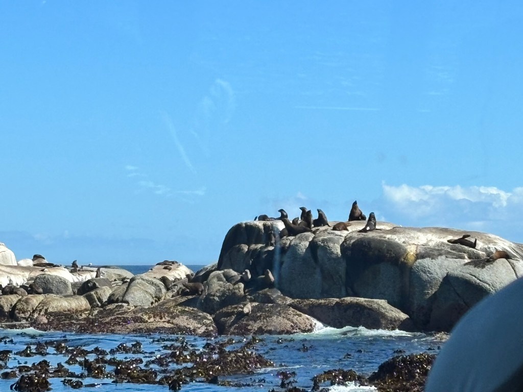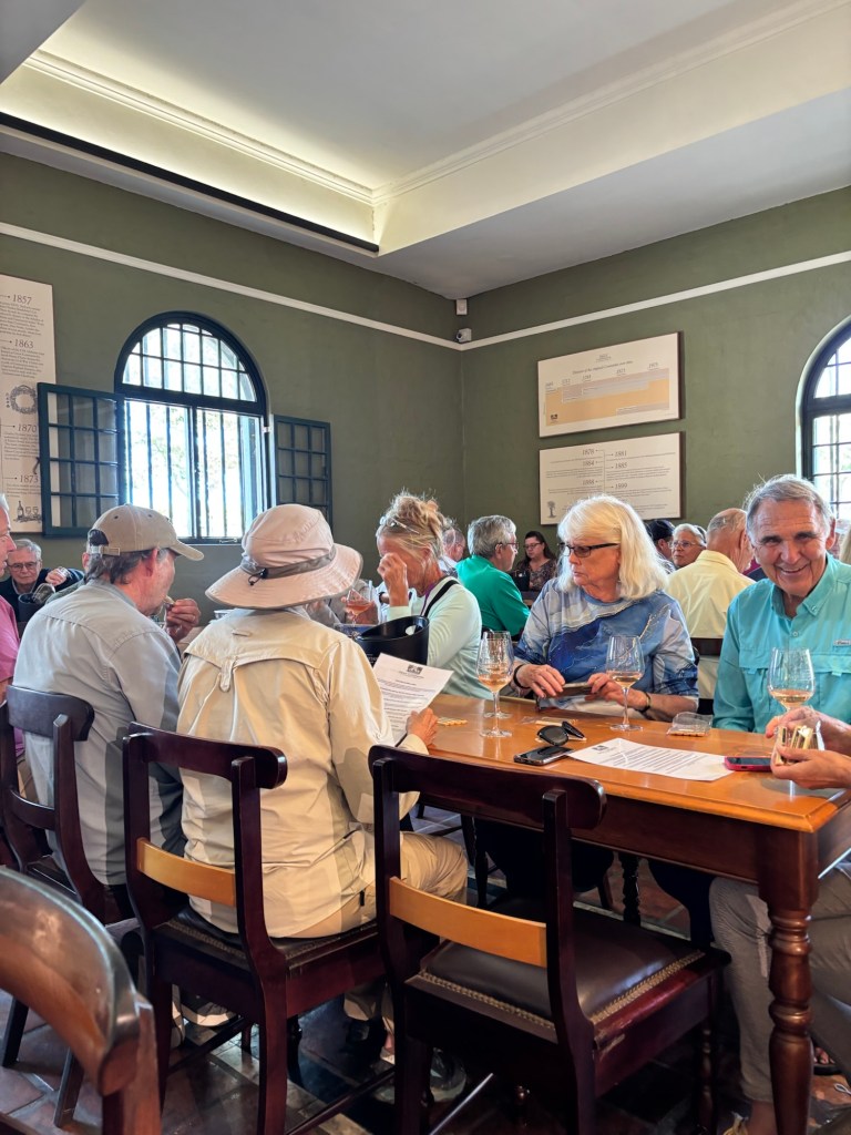 On the 2nd day, we took a coastal route thru some of the nicer suburbs of Cape Town to reach a small harbor for our short boat ride to Duiker (or seal) Island. Duiker is actually a nickname for the Cape Cormorant, an indigenous seabird, but the seals get top billing. Afterwards, we made our way to the winery district and Groot Constantia, South Africa’s oldest winery established in 1685. We were treated to five different wine-chocolate pairings. All were delicious, but I opted for the rose and more chocolates to take back to the ship.